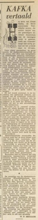 [x] Willem Frederik Hermans, ‘Kafka vertaald’, in: Het Vrije Volk, 23 februari 1951.